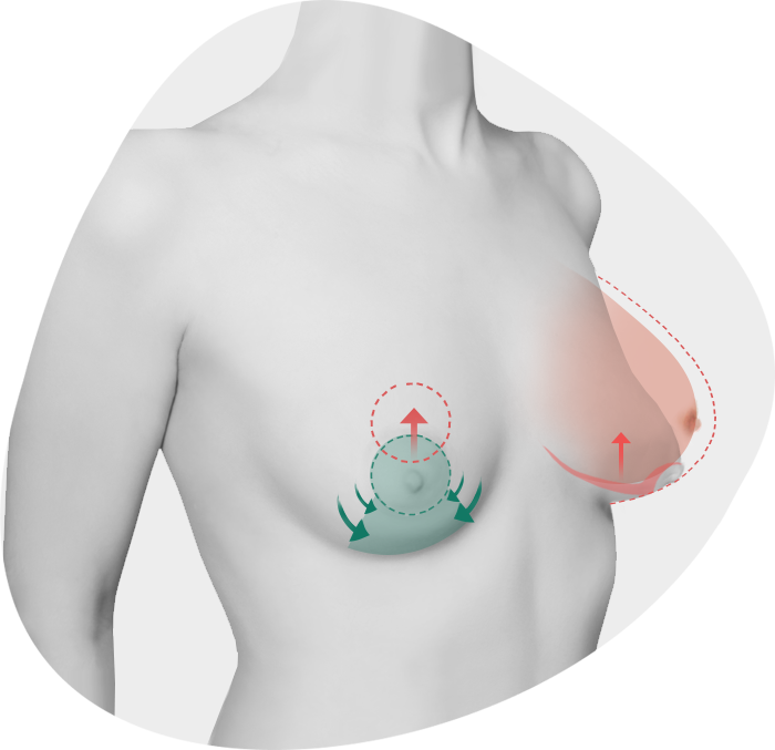 가슴의 처짐 정도, 유선조직의 변화, 볼륨 등을 고려해 처진 가슴의 불필요한 조직, 피부는 제거하고