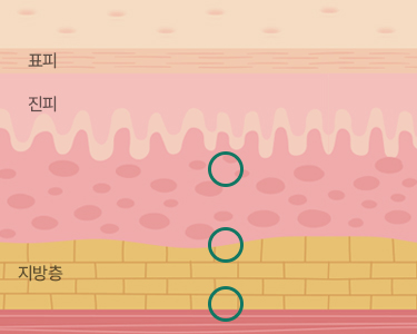 진피층, 얕은 지방층, 깊은 지방층에